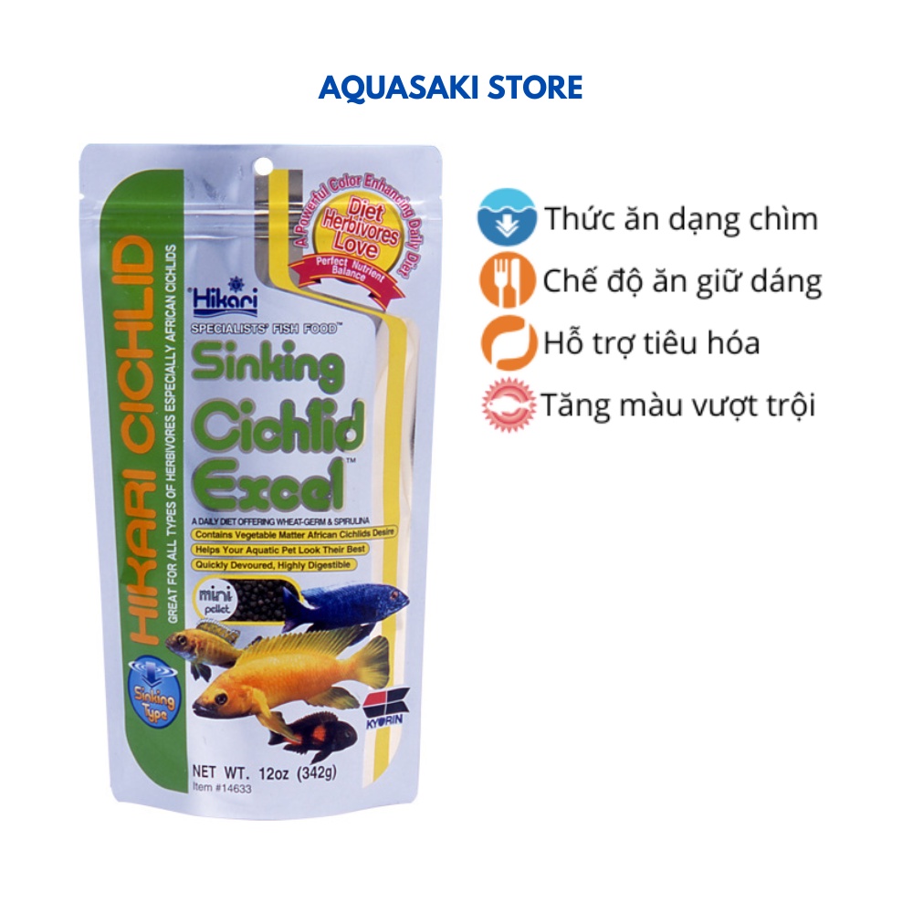 Cám cho cá ali HIKARI CICHLID SINKING EXCEL hạt chìm 342g