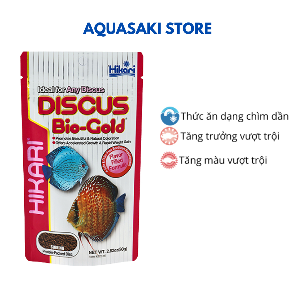 Công thức khoa học cho cá dĩa, có tính đến nhu cầu của chúng về mức protein cao hơn. Ngoài ra, bản chất cá dĩa được biết đến là loài ăn uống khó tính. Hạt Discus Bio-Gold đã được sản xuất để giảm bớt sự lộn xộn do thói quen ăn uống bình thường của cá dĩa gây ra và được pha chế với nhiều chất hấp dẫn hương vị tự nhiên để mang lại sự chấp nhận tối đa. Chế độ ăn uống này đã được sử dụng như một loại thức ăn độc quyền để nuôi và nhân giống cá dĩa đánh bắt tự nhiên.