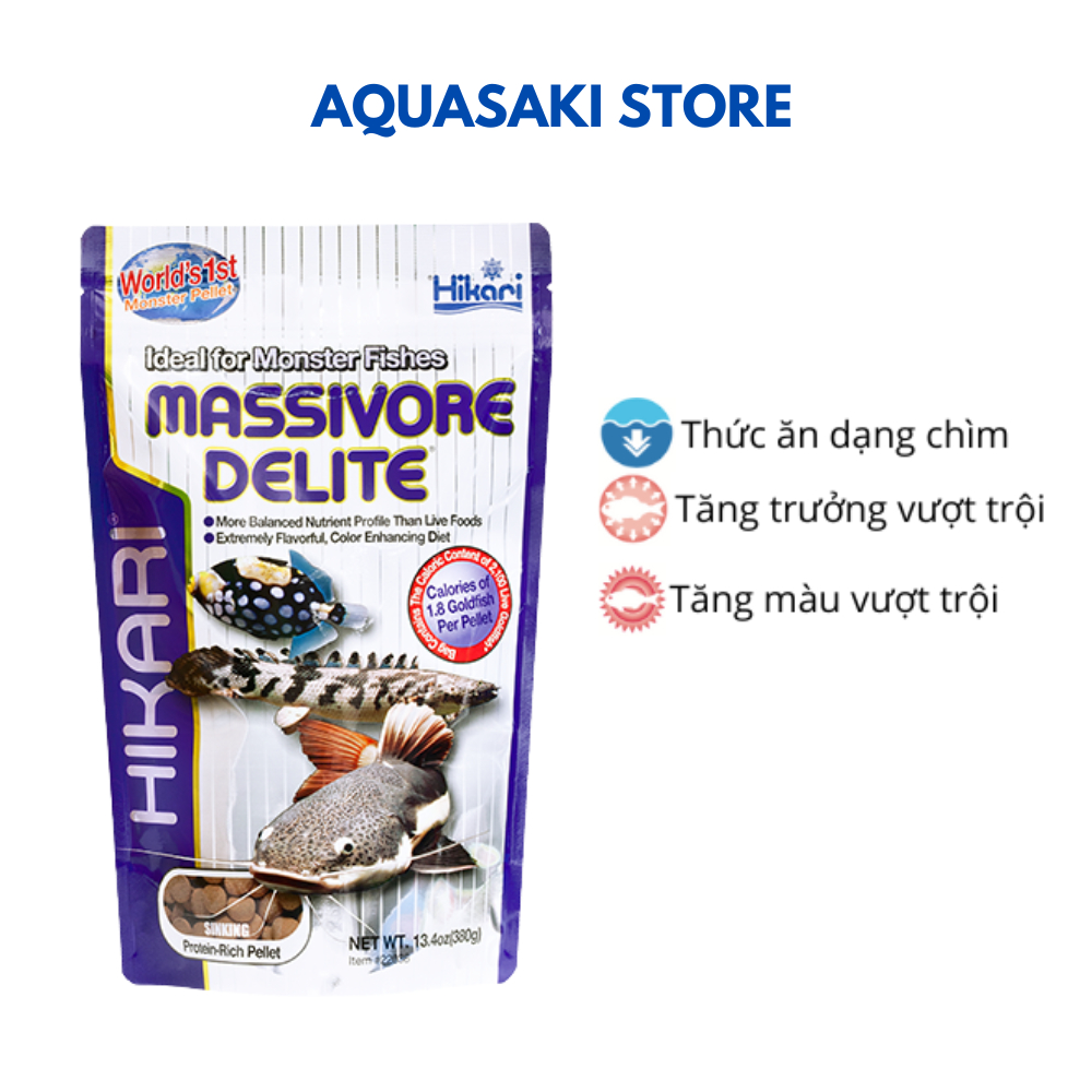 Một hỗn hợp dinh dưỡng được pha trộn một cách khoa học đặc biệt dành cho những loài cá ăn thịt lớn hơn có xu hướng tránh cho ăn từ trên đỉnh bể cá. Chế độ ăn uống có nhiều hương vị này mang lại sự tăng trưởng tuyệt vời và hình thể mong muốn đồng thời cải thiện màu sắc