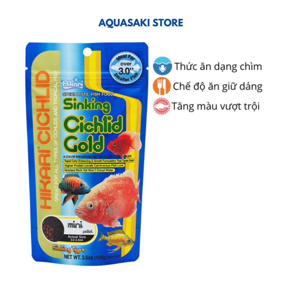 Thức ăn cho cá tai tượng châu phi cá hồng két tăng size tăng màu Hikari Cichlid Gold 342g hạt mini/medium