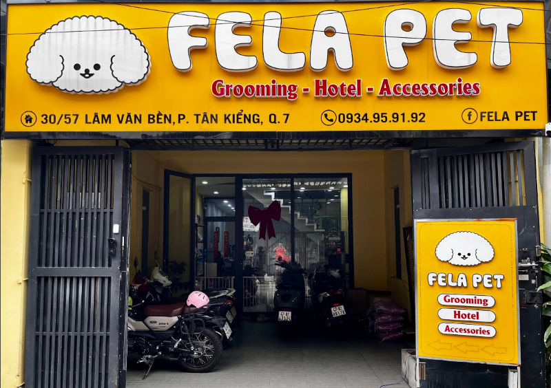Fela pet shop tọa lạc tại 30/57 Lâm Văn Bền, phường Tân Thuận Tây, Quận 7, TP.HCM, thuận tiện cho khách hàng khu vực Quận 7, Quận 4, Nhà Bè và các khu đô thị lân cận. Đây là địa chỉ chuyên cung cấp các dịch vụ spa, khách sạn thú cưng và các sản phẩm chăm sóc cần thiết cho chó mèo.
