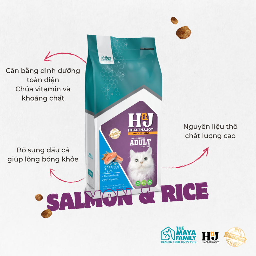 Hạt cho mèo trưởng thành HJ PREMIUM SAMON RICE ADULT CAT – cá biển bao 15kg
