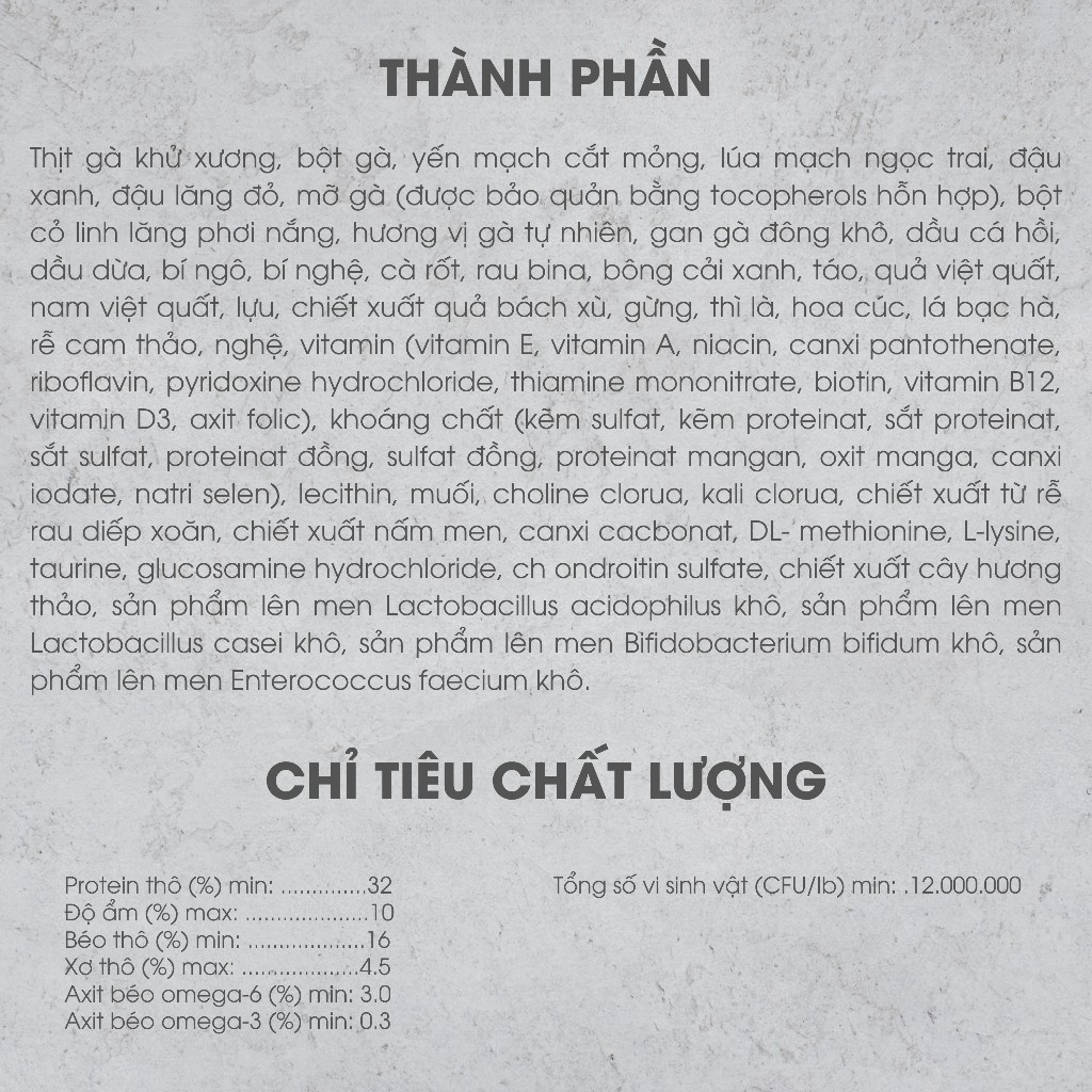 Prebiotics & probiotics mạnh mẽ giúp hấp thụ nhiều hơn các chất dinh dưỡng và thúc đẩy hệ tiêu hóa khỏe mạnh hơn, đồng thời hàm lượng glucosamine và chondroitin tăng lên giúp bảo vệ khớp và hông trong quá trình vận động.